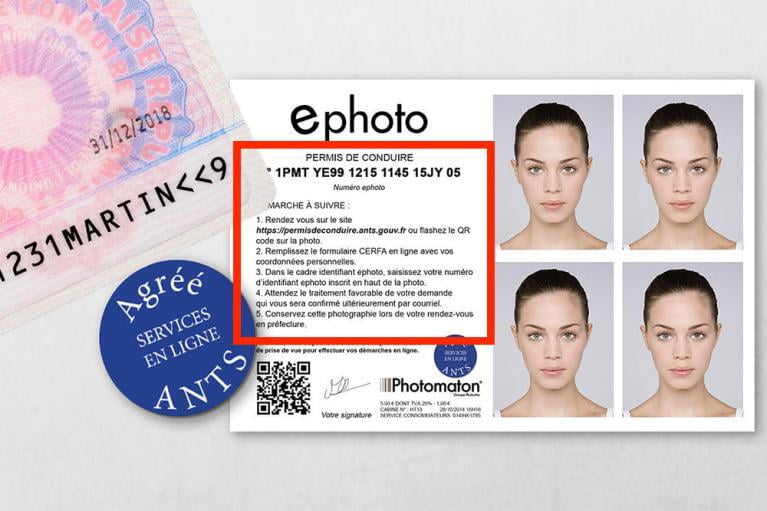 It is now necessary to apply online for a driving license via a dedicated web platform. In partnership with the Ministère de l’Intérieur and the Agence Nationale des Titres Sécurisés, Photomaton® has deployed a new ephoto service in most of its photographic booths. By selecting this service, it is now possible to transfer your photo ID and signature to a secure server. The printed sheet includes a unique ephoto number, 4 ICAO-compliant ID photos, and the procedure for applying online for a driver's license. Entering this ephoto number during this process allows you to include your photo ID and signature in your driver's license application.